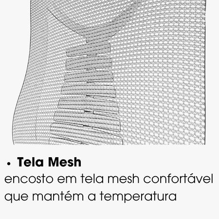 - Encosto em tela mesh que melhora a ventilação