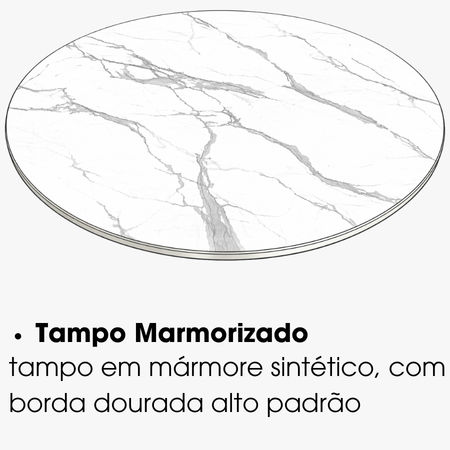 Se você busca uma mesa que vá além do básico, a Solaris entrega um visual premium com excelente custo-benefício. Seu design com borda dourada + tampo marmorizado cria um efeito visual de alto impacto, elevando o nível da decoração sem precisar investir em pedra natural.