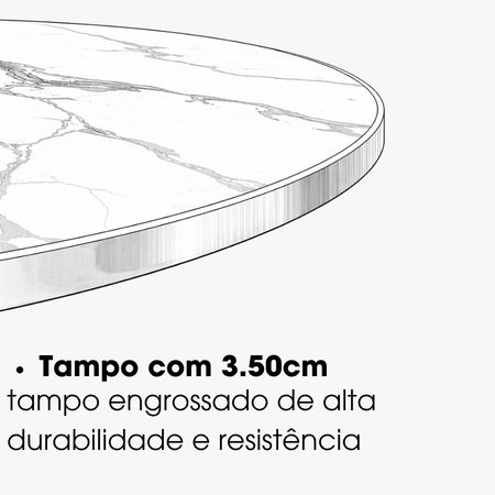 O grande diferencial da Mesa Solaris está na sua capacidade de elevar o padrão do espaço com um visual clean e luxuoso. O tampo em mamore sintético reproduz com fidelidade os veios do mármore natural, trazendo um acabamento elegante sem as desvantagens de peso e manutenção da pedra.